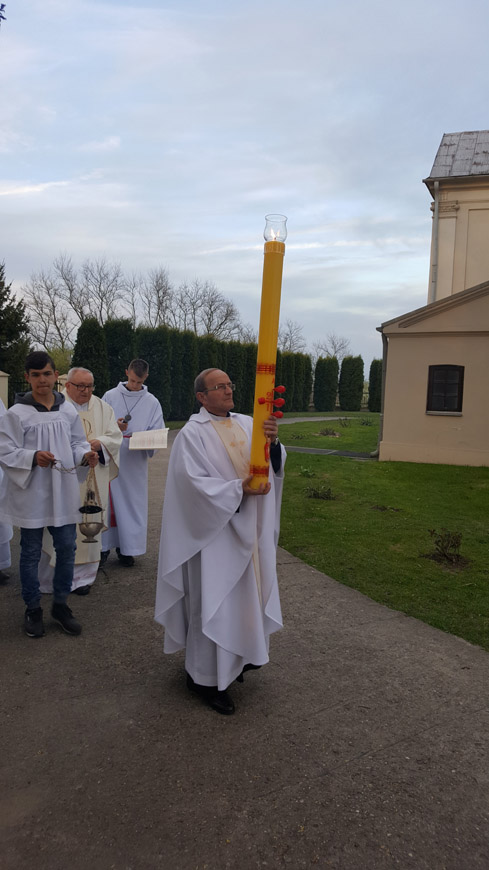 Kościół świętuje nową paschę którą jest Chrystus. Uczestniczyliśmy w Najświętszej ofierze, której przewodniczył ks. prał. Tomasz Rusiecki , ks. kan. prob. Wiesław Baran oraz ks .wik. Andrzej Pragnący. Przed Eucharystią odbyła się liturgia Światła w której było poświecenie ognia i procesja światła następnie rozpoczęła się Eucharystia. W homilii mogliśmy usłyszeć o śmierci i Zmartwychwstania Chrystusa, abyśmy pamiętali ze Wielkanoc jest ważnym świętem dla każdego z nas.