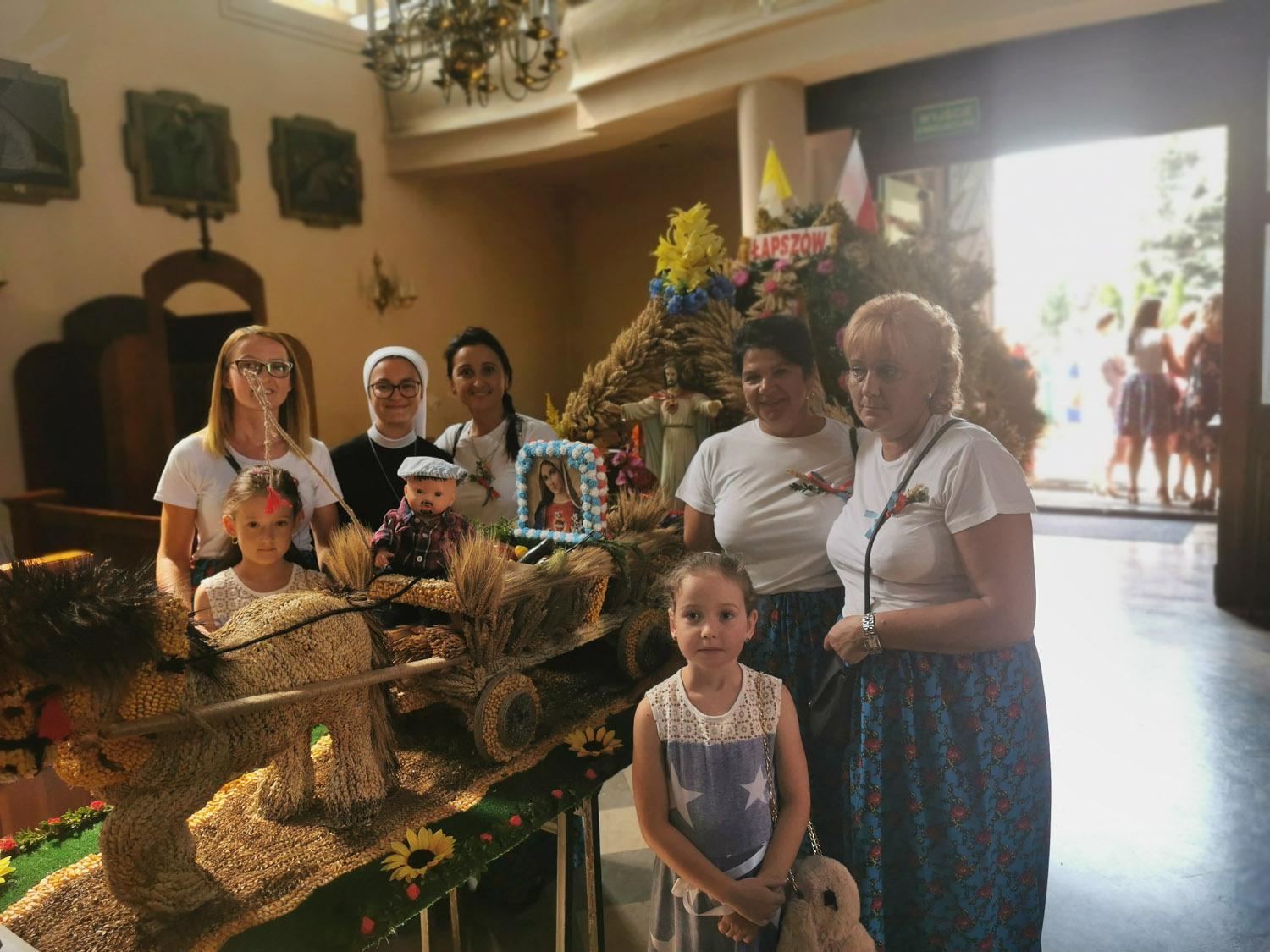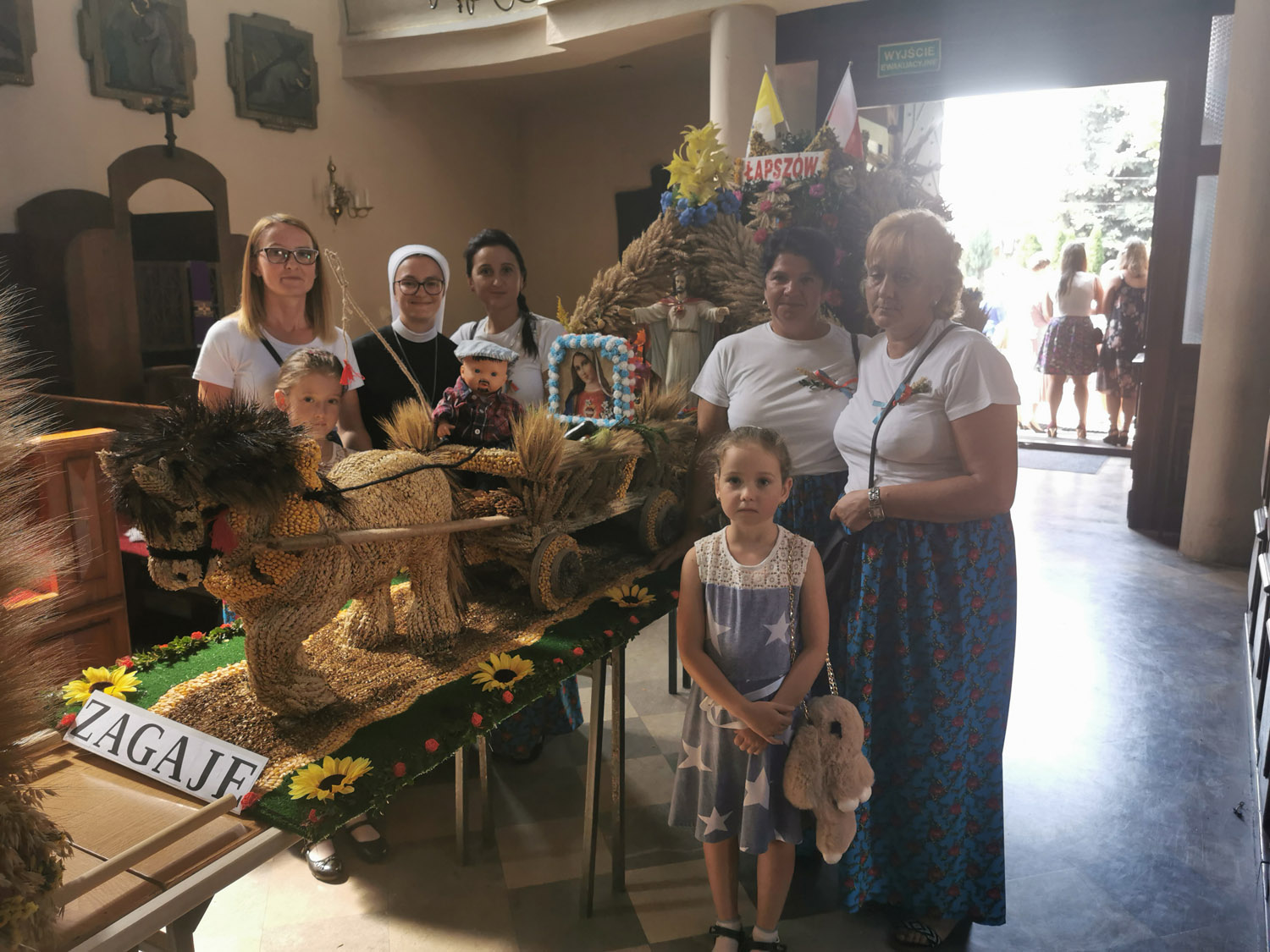 25 sierpnia w niedzielę w naszej wspólnocie Parafialnej obchodziliśmy doroczne dziękczynienie za plony ziemi.  Uroczystej Mszy Świętej o godz. przewodniczył ks. prefekt. Przed Mszą Świętą odbyła się procesja z wieńcami do Kościoła, wykonanymi przez gospodynie naszej parafii. Praca którą włożono w wykonanie wieńcy, rodzi wdzięczność za dar urodzaju oraz obfitego plonu zboża, kwiatów owoców i warzyw, które dzięki Bożej hojności otrzymujemy. Mogliśmy podziwiać wieńce z następujących miejscowości: Książnice Wielkie, Książnice Małe, Łapszów, Jaksice, Majkowice, Biskupice, Jankowice, Modrzany. Ksiądz Proboszcz w kazaniu przypomniał nam o wartości chleba, pracy ludzkiej i darów plonu ziemi. Kobiety z różnych miejscowości po zakończonej Eucharystii zaprezentowały przyśpiewki, mówiące o miejscach i osobach z naszej parafii.