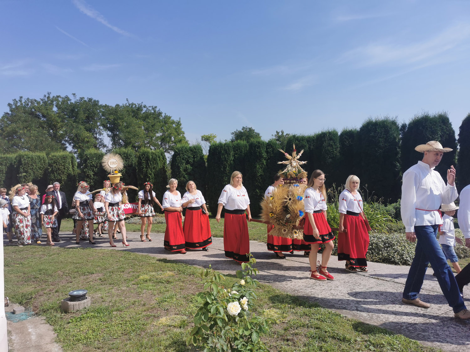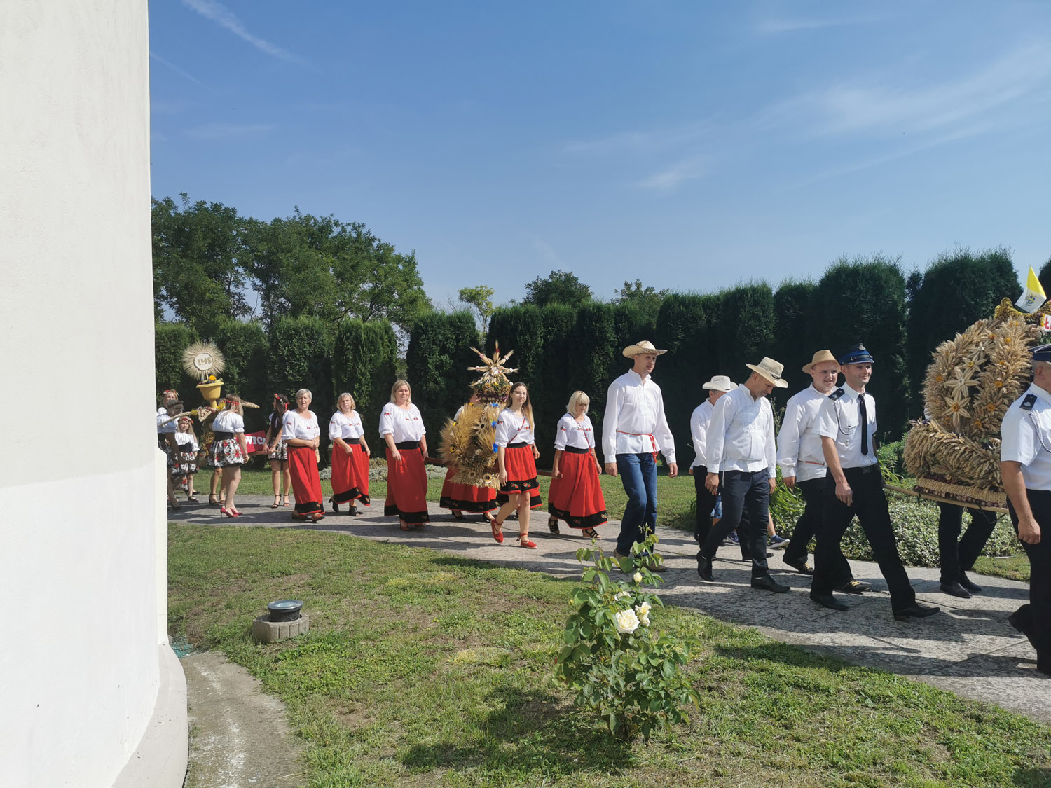 25 sierpnia w niedzielę w naszej wspólnocie Parafialnej obchodziliśmy doroczne dziękczynienie za plony ziemi.  Uroczystej Mszy Świętej o godz. przewodniczył ks. prefekt. Przed Mszą Świętą odbyła się procesja z wieńcami do Kościoła, wykonanymi przez gospodynie naszej parafii. Praca którą włożono w wykonanie wieńcy, rodzi wdzięczność za dar urodzaju oraz obfitego plonu zboża, kwiatów owoców i warzyw, które dzięki Bożej hojności otrzymujemy. Mogliśmy podziwiać wieńce z następujących miejscowości: Książnice Wielkie, Książnice Małe, Łapszów, Jaksice, Majkowice, Biskupice, Jankowice, Modrzany. Ksiądz Proboszcz w kazaniu przypomniał nam o wartości chleba, pracy ludzkiej i darów plonu ziemi. Kobiety z różnych miejscowości po zakończonej Eucharystii zaprezentowały przyśpiewki, mówiące o miejscach i osobach z naszej parafii.